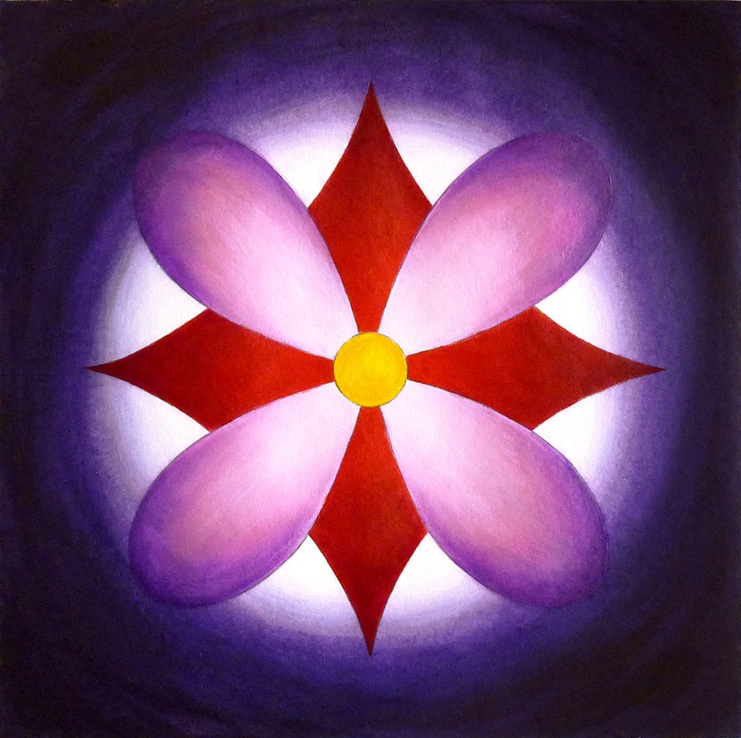 Aus dem roten Nährboden/Materie wächst eine Blume für bedingungslose Liebe und Transformation, geborgen im Kreis und in Licht/Klarheit.